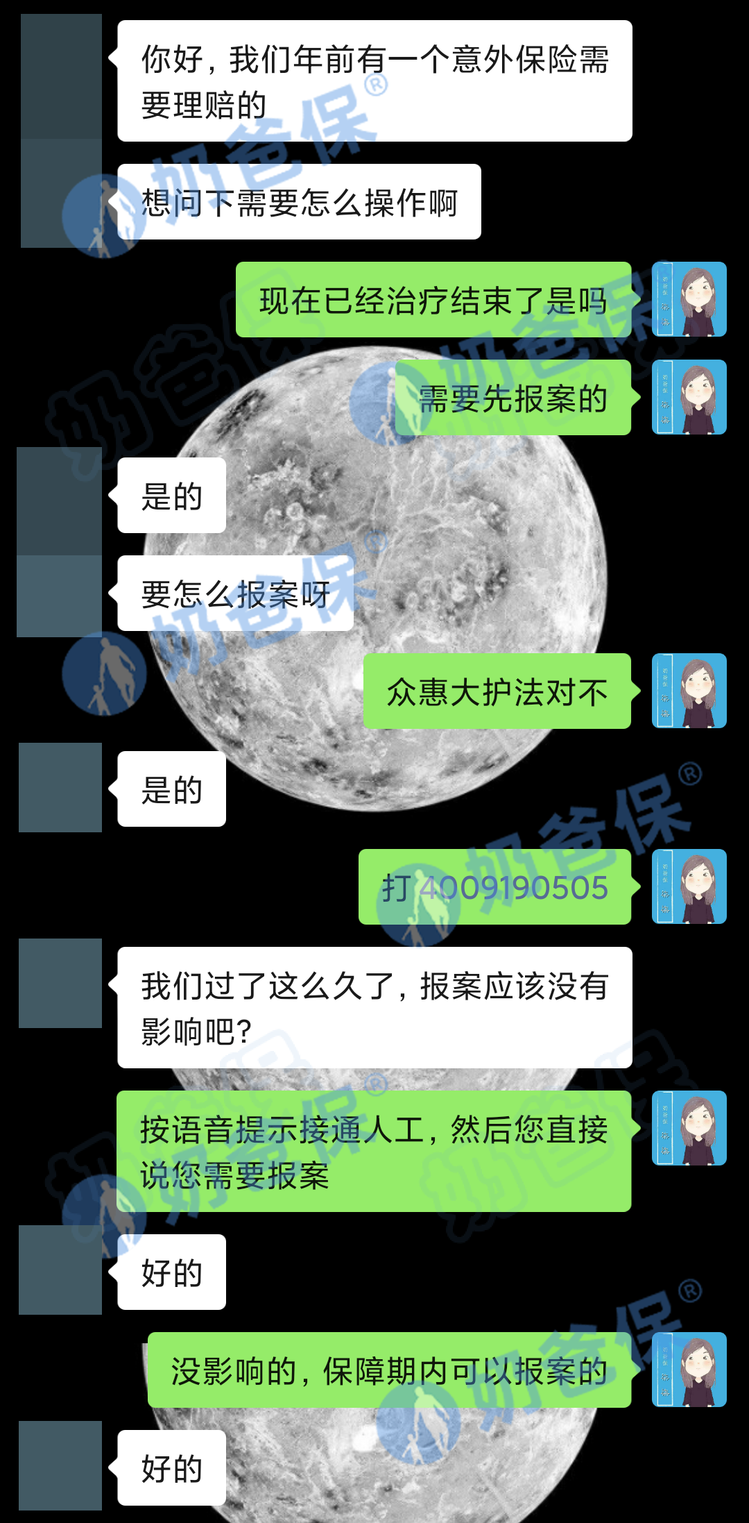 今天分享就到这里,如果出险了,不知道怎么报案和理赔的,可以联系奶爸保的客服,全程协助理赔。
