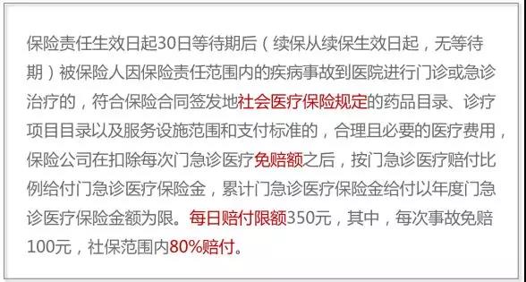 门诊/急诊医疗险是指保障在门诊或者急诊的医疗费用保险,赔付形式是报销型,用多少报多少。 奶爸不特别推荐门诊医疗险的原因主要有三个: 1. 门诊急诊的医疗费一般不会太高,2016年三级公立医疗的人均门诊费用是289元,而社保报销后的费用就更低了,很可能只是几十块的理赔额。 此外,理赔需要走流程的,虽然目前有些3天闪赔的便捷功能,但是医院发票、医疗清单等,需要准备的材料不少。 奶爸更建议门诊医疗费用的财务风险自留。