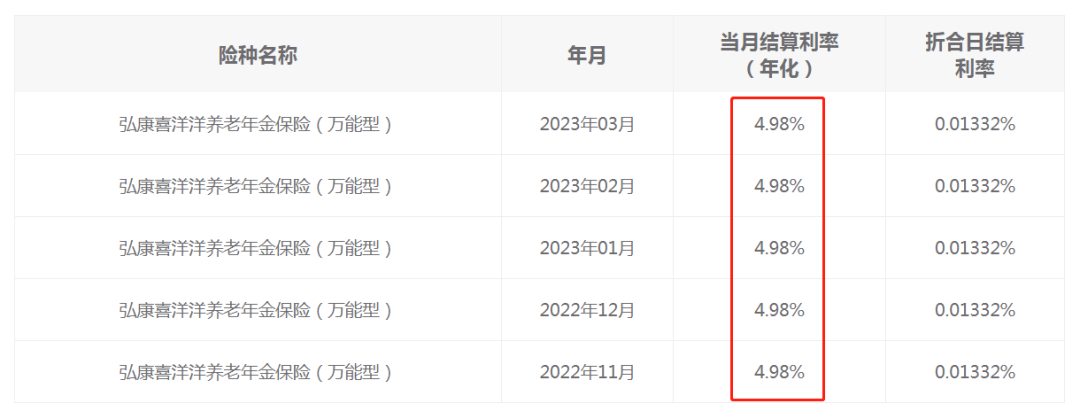 回顾一下喜洋洋万能账户的结算利率,已经持续2年多保持在4.98%的水平,又高又稳,就给大家提供了一个优秀范本。