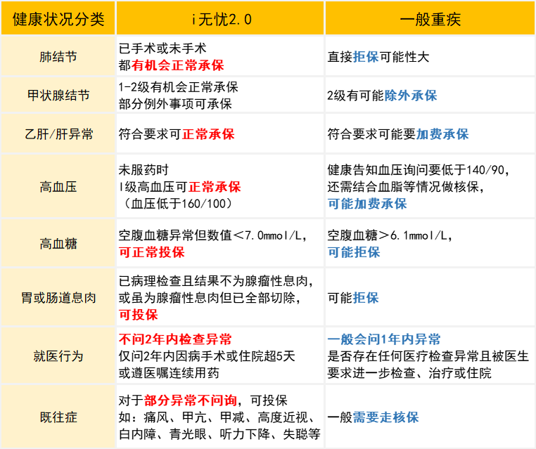 老实说,i无忧2.0是我接触到的重疾险里面,对健康要求更宽松的重疾险了。