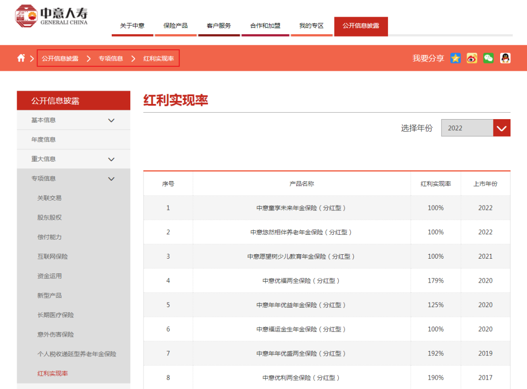 根据监管部门的要求,保险公司已售分红险产品的过往分红实现率情况要在官网上进行披露。