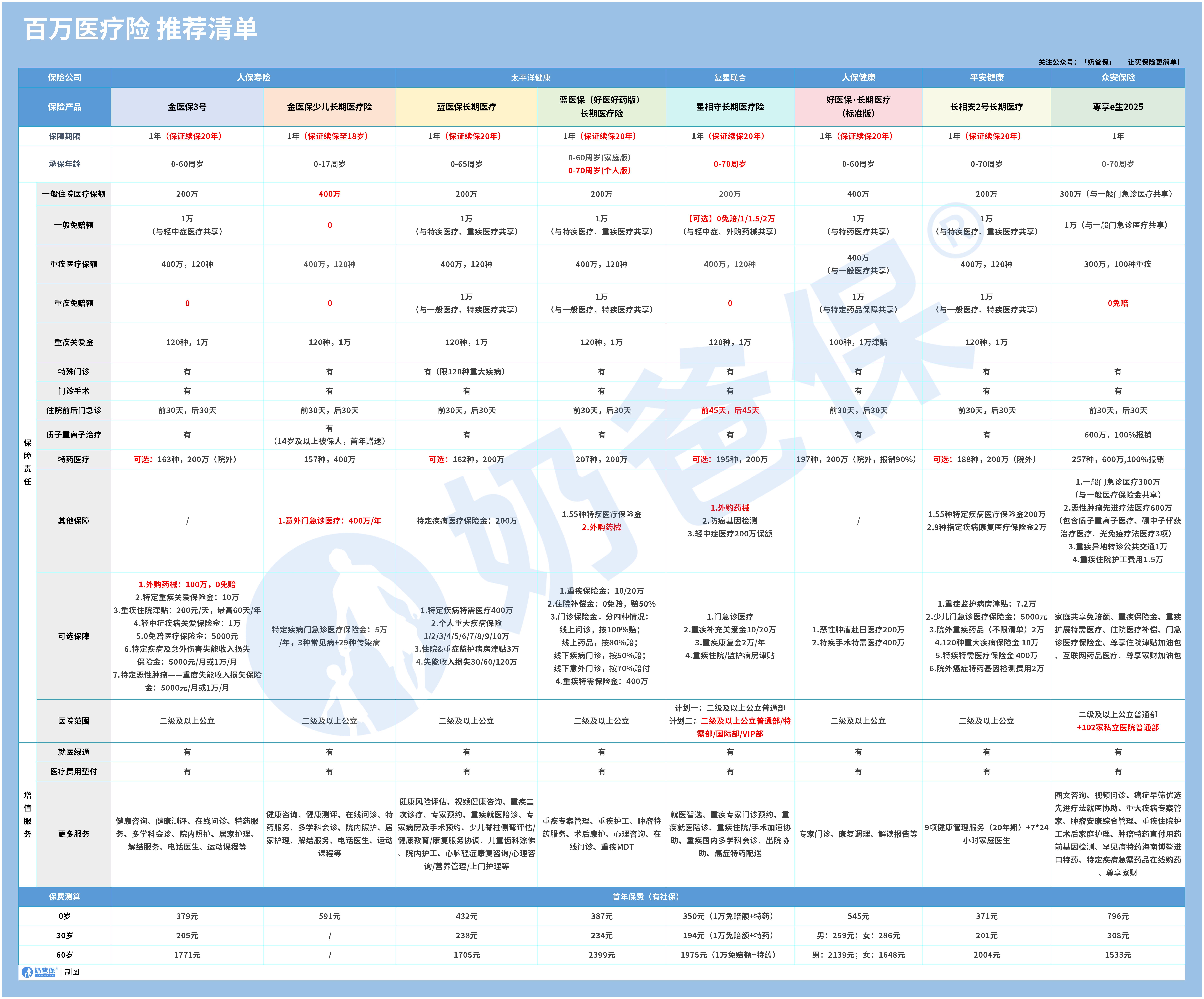 至于百万医疗险,目前值得买的百万医疗险,可以看看这几款: