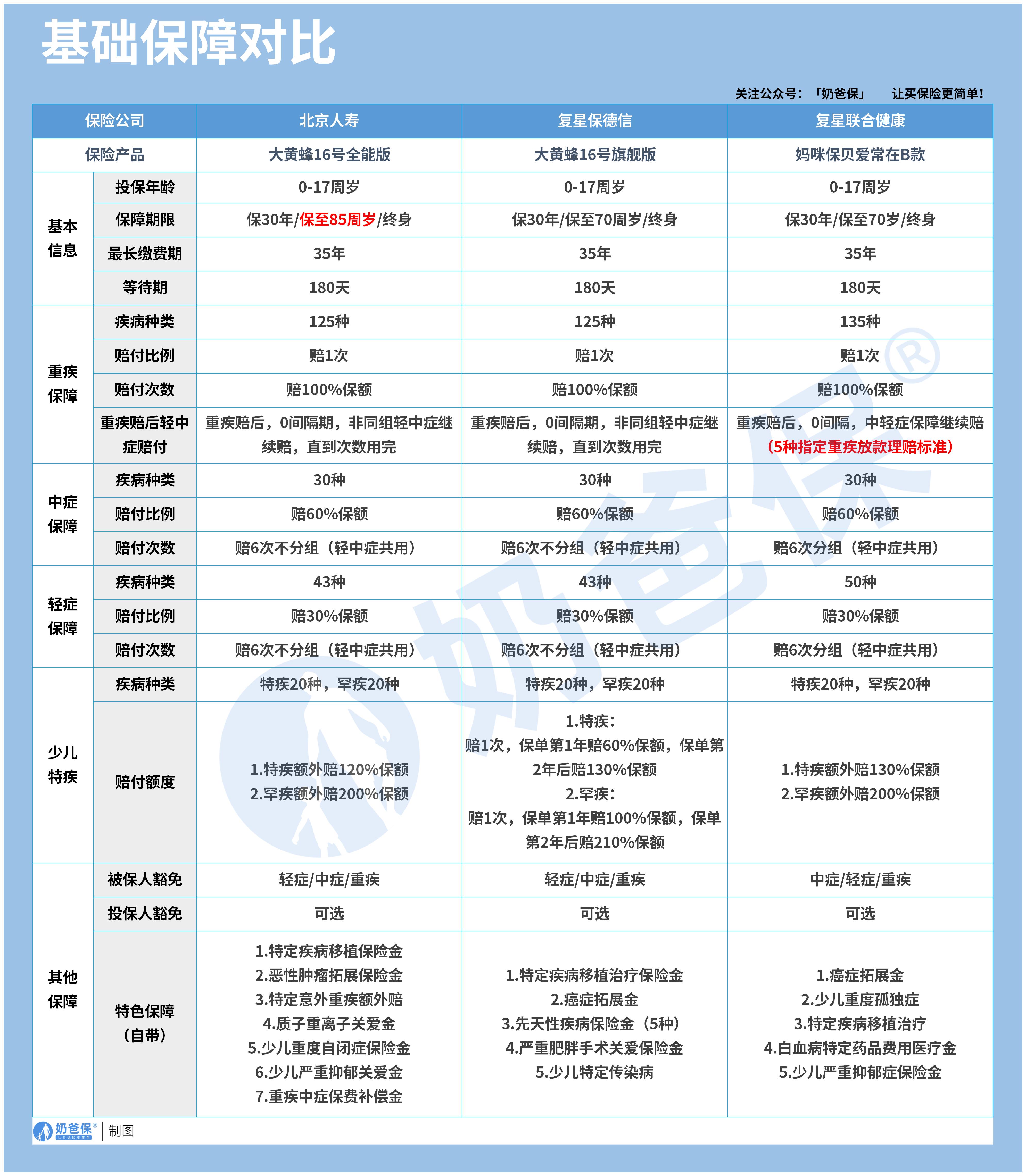大黄蜂16号全能版、大黄蜂16号旗舰版,妈咪保贝爱常在B款,堪称当下少儿重疾险 顶流。