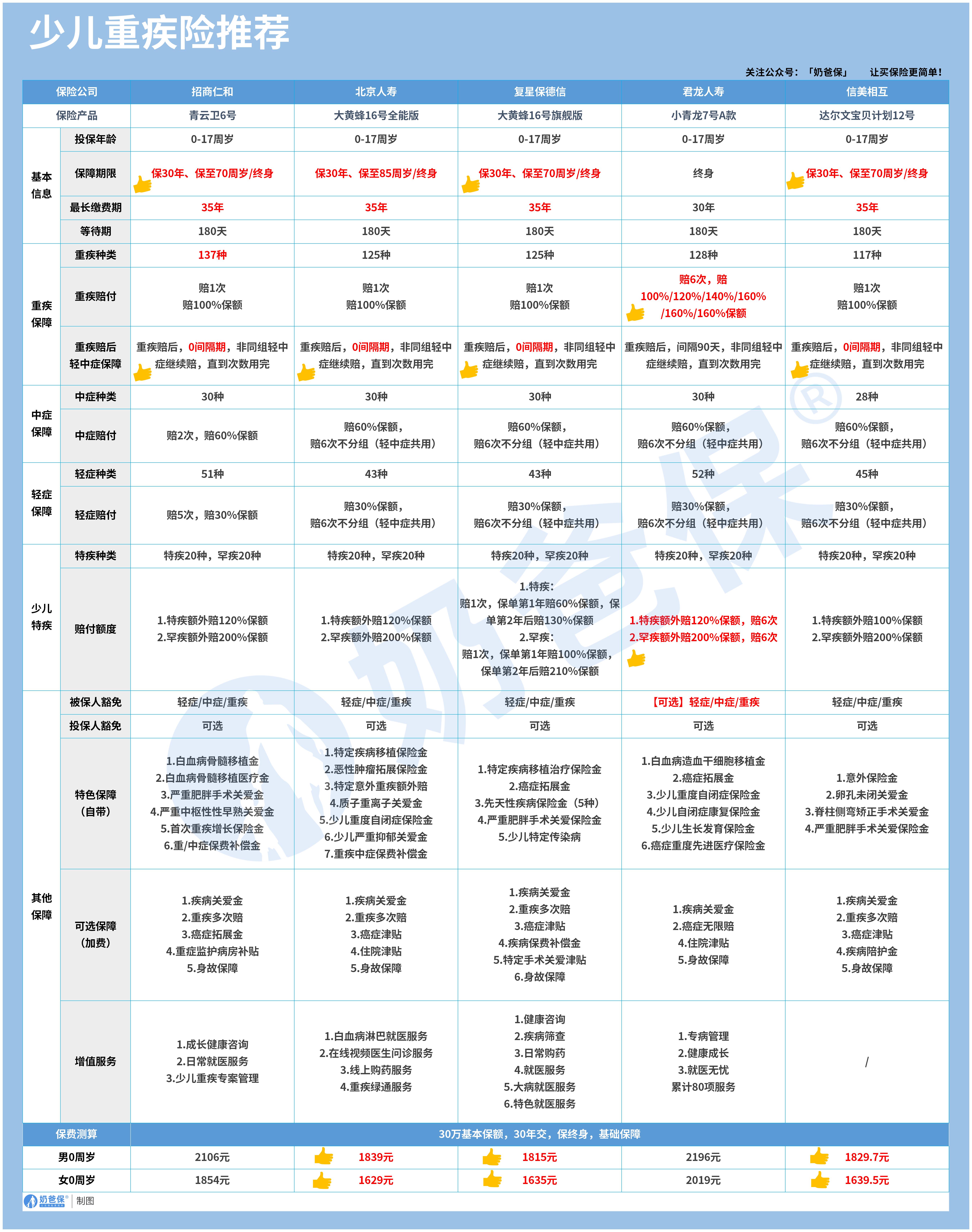 讨论完买少儿重疾险选定期还是终身,接着我们看看市面上有哪些儿童重疾险值得关注。
