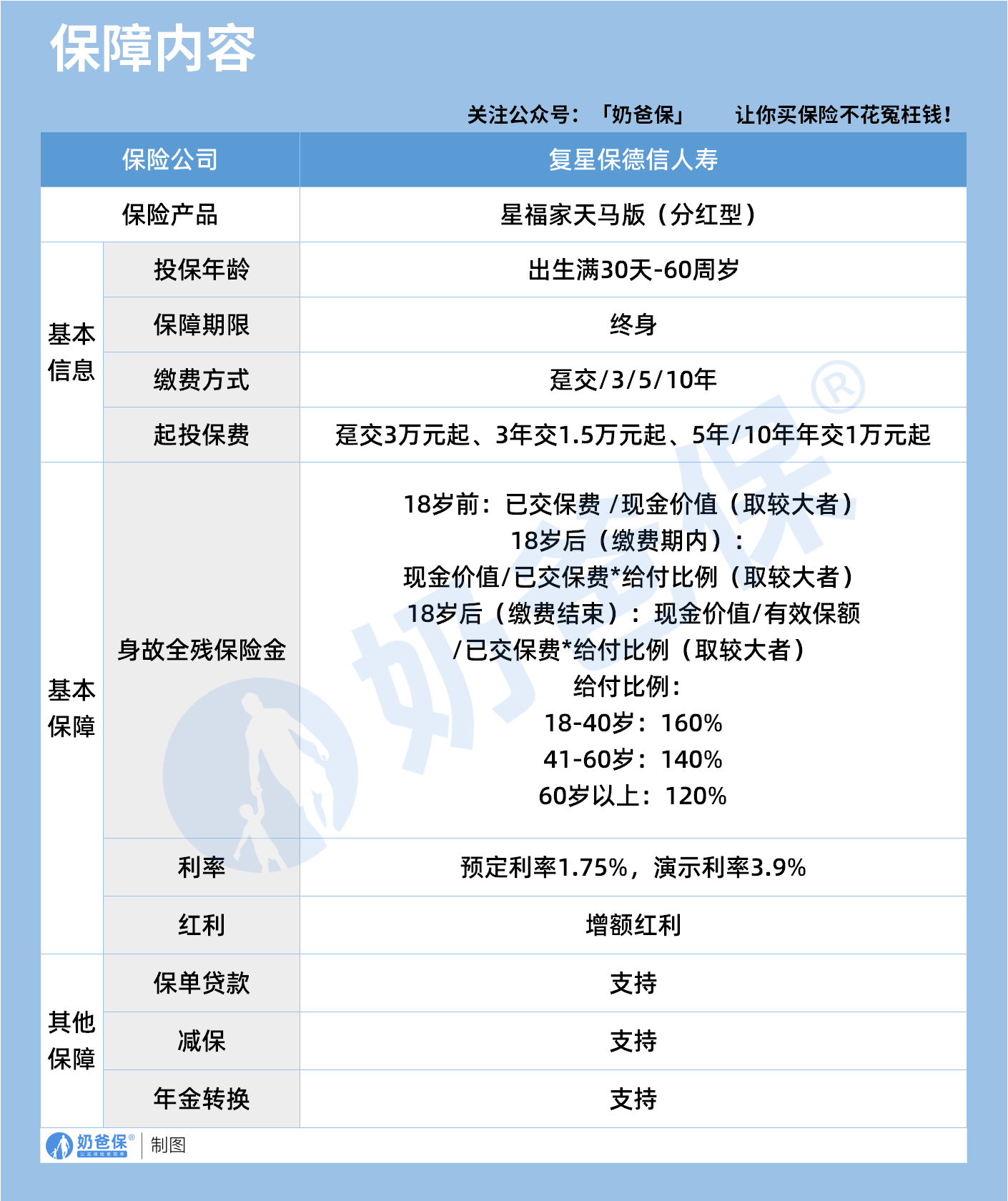 今天奶爸要介绍的,是复星保德信人寿即将推出的星福家天马版分红型保险,