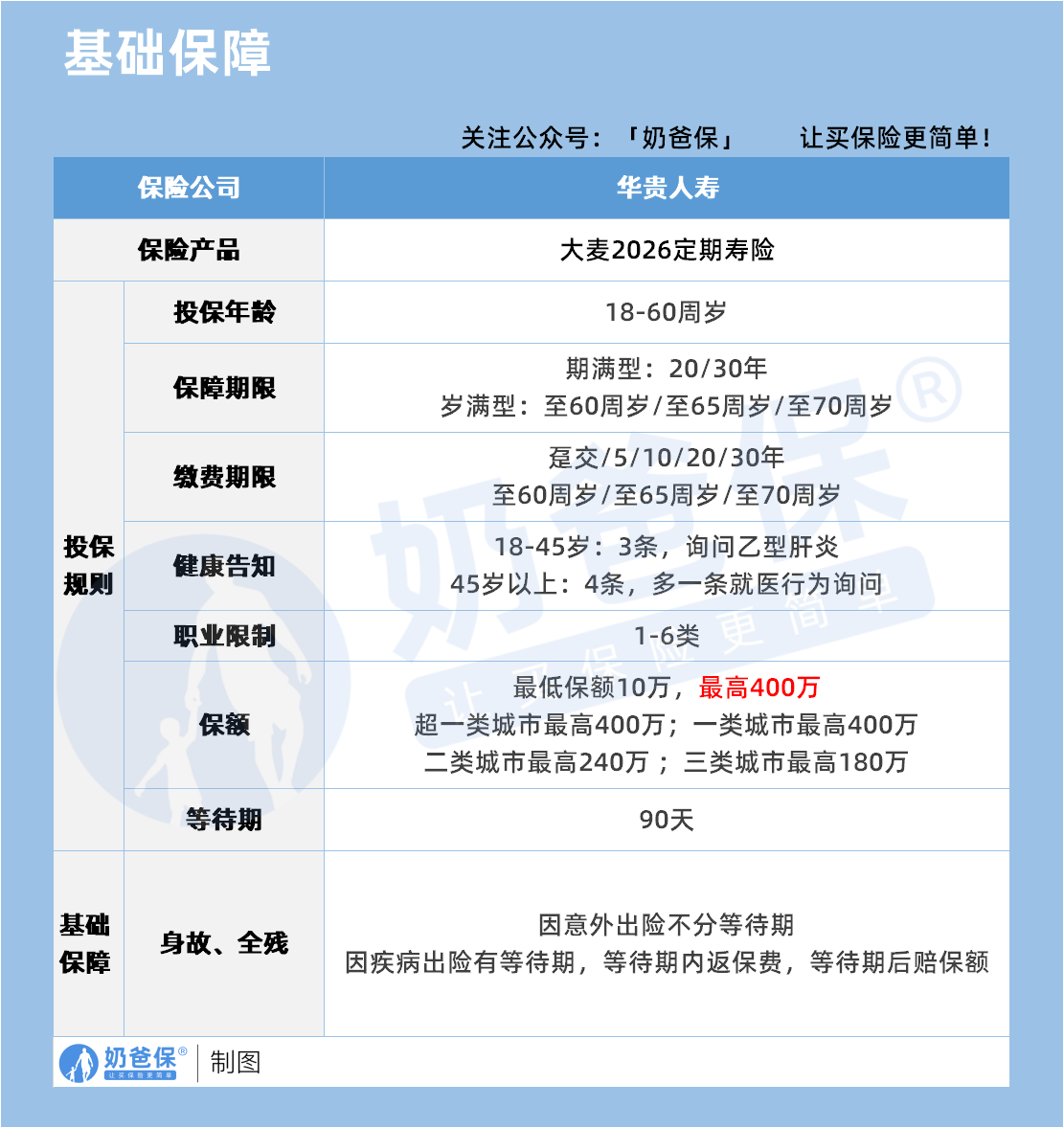 华贵大麦2026来自华贵人寿,投保年龄覆盖18到60周岁,