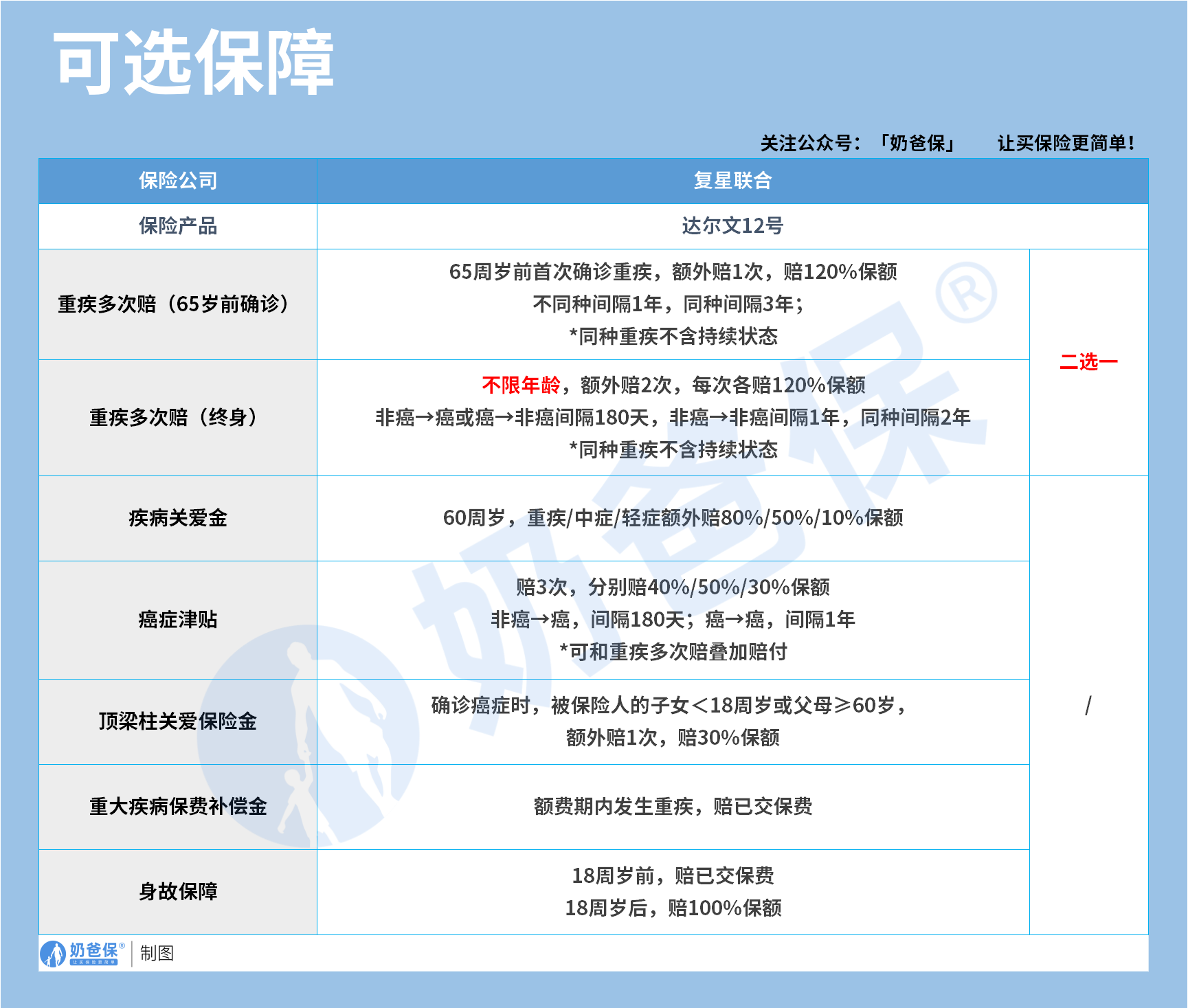 达尔文12号精准抓住了这一痛点,推出顶梁柱关爱金可选责任: