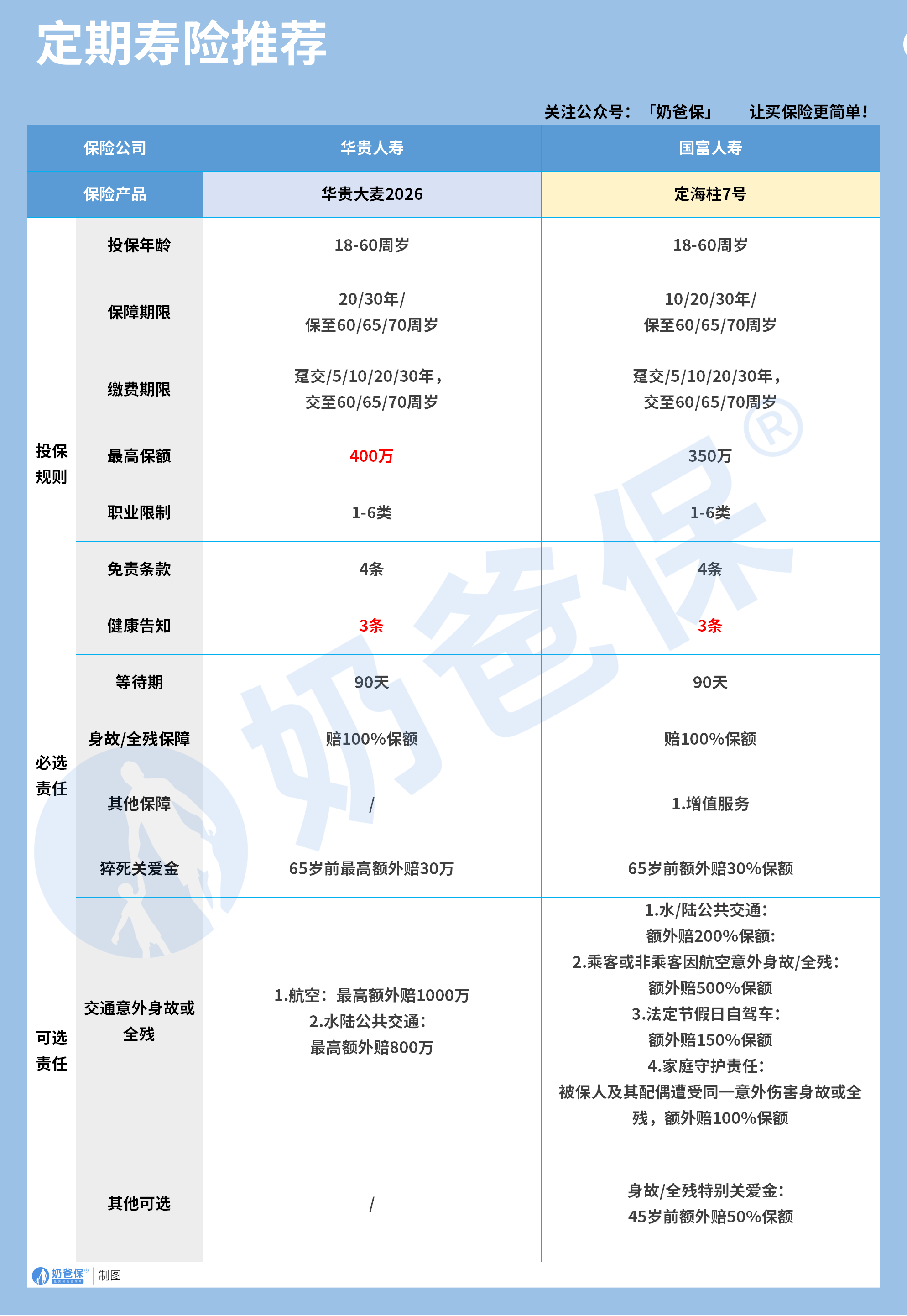 在定期寿险的选择上,华贵大麦2026和定海柱7号是两款值得推荐的产品。