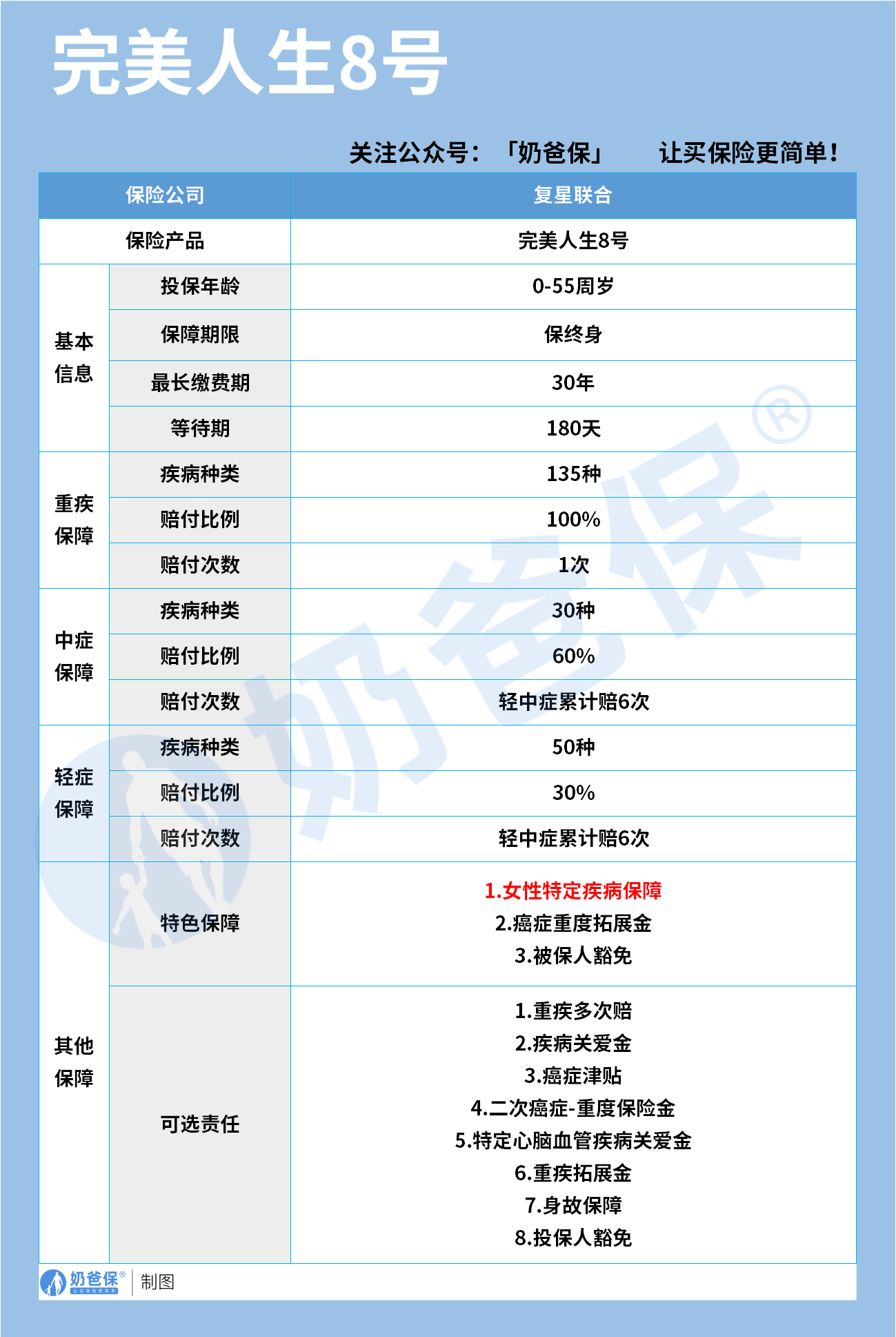 在众多重疾险产品中,复星联合完美人生8号是一款专为女性需求考量的优质选择。