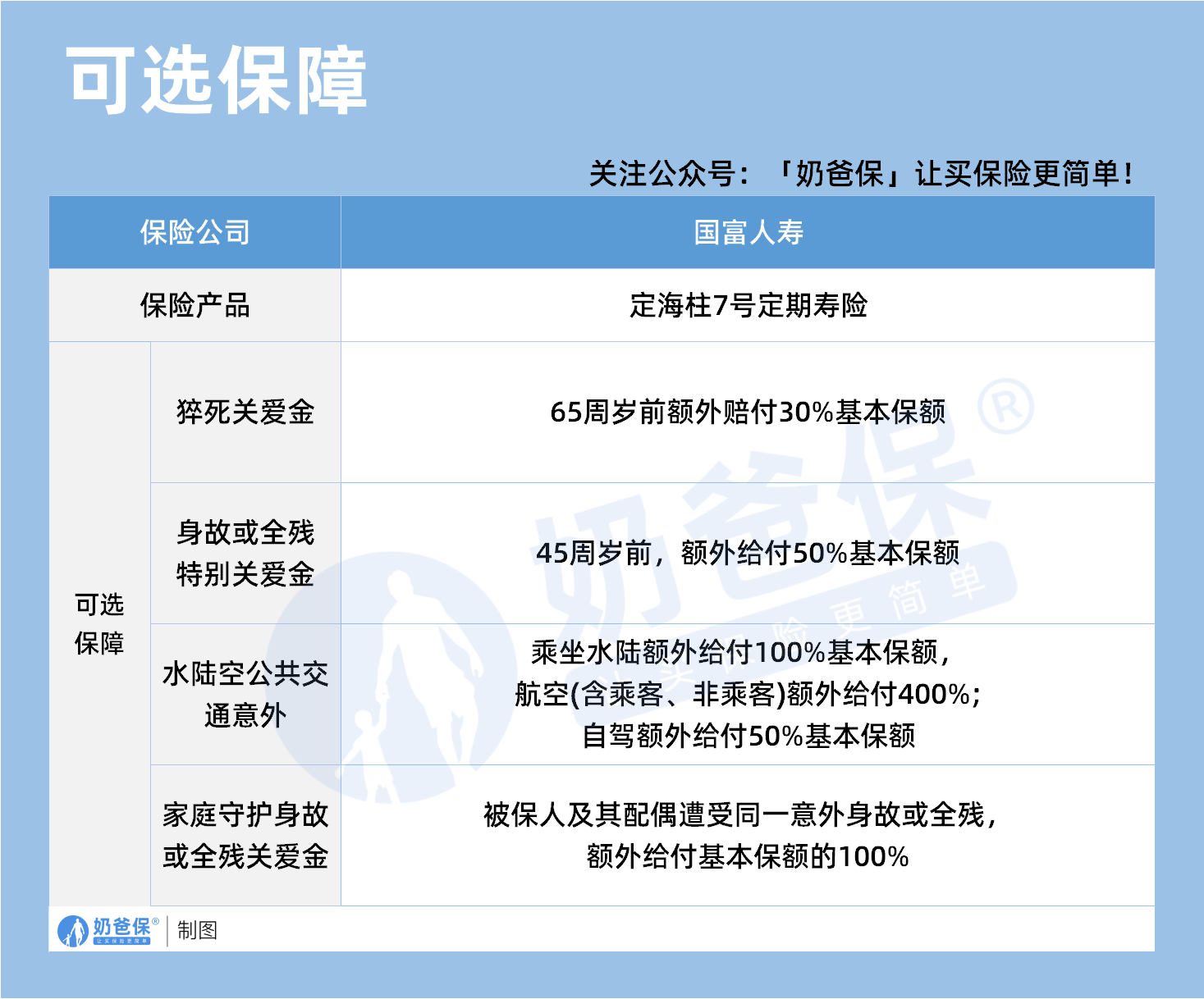 这项保障就是为了应对这种极端情况,一旦发生意外,不仅能获得基础保额,还能额外得到一笔赔付,让老人和孩子的生活得到保障。
