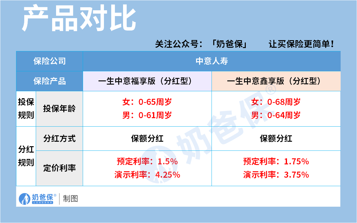 两款产品的核心差异,主要体现在投保年龄和分红利率两个方面。