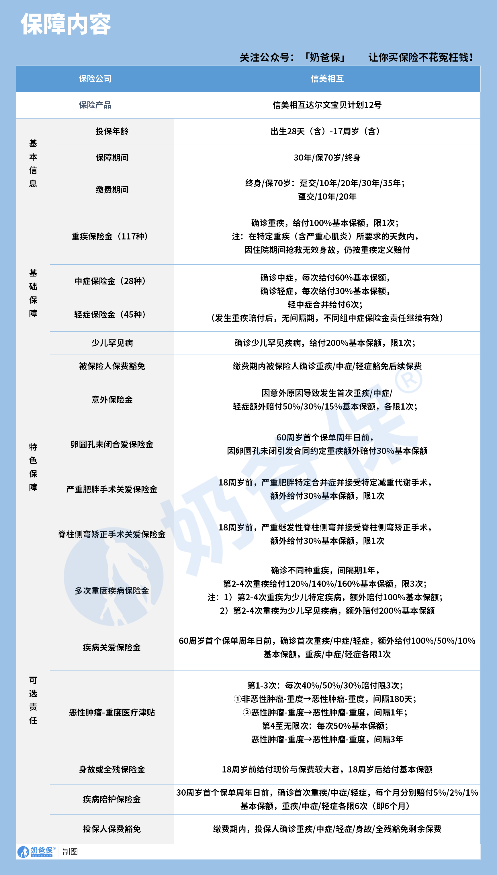 信美相互达尔文宝贝计划 12 号作为消费型少儿重疾险,保障全面且针对性极强。