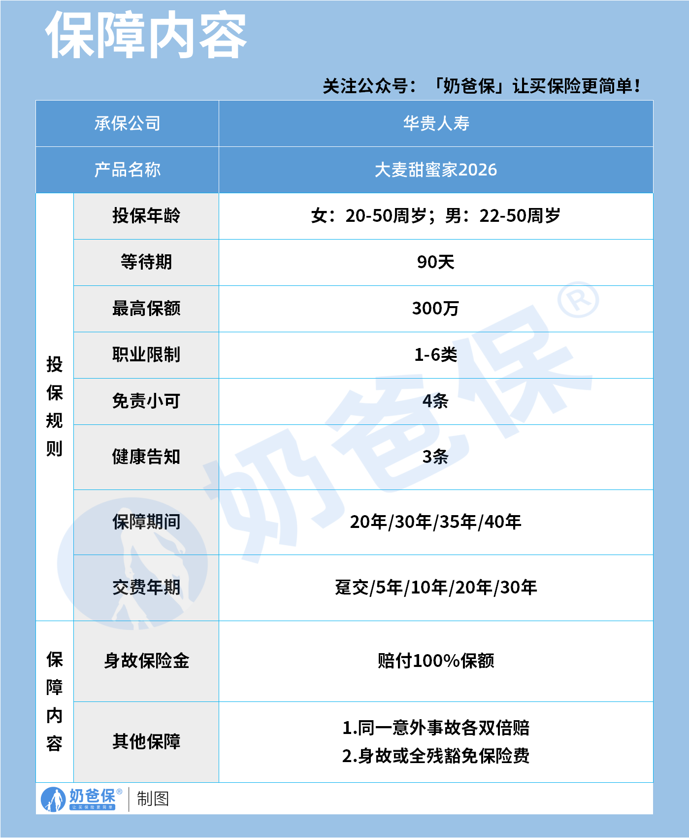 而华贵大麦甜蜜家2026的身故保障围绕“夫妻共保”展开,