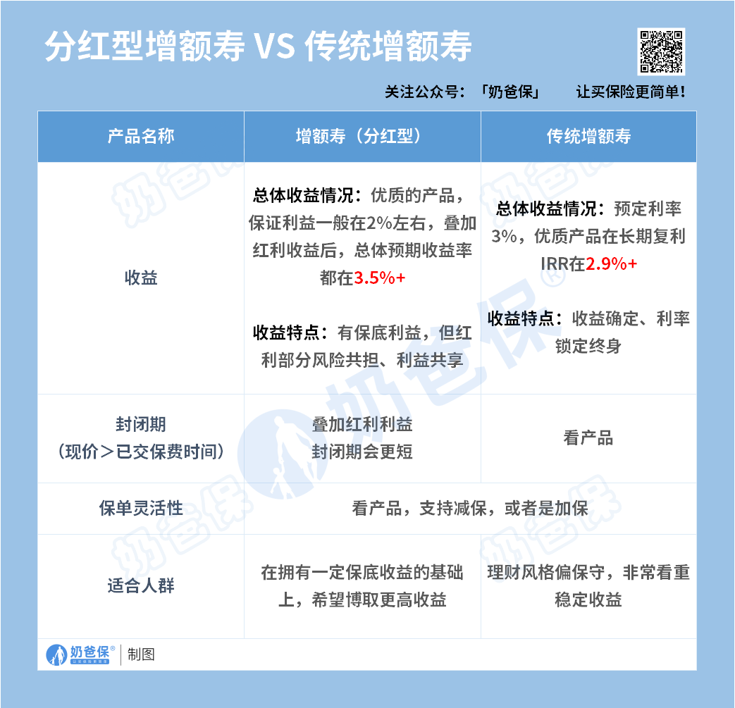 总结一下,终身寿险分红型的取用还是比较灵活的,并且附加上分红后,不仅封闭期会更短,预期收益也会更高。