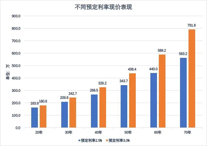 40年后,这一差距进一步扩大,3.0%预定利率的现金价值达到326.2万元,而2.5%预定利率的为268.5万元,差距增至57.7万元。