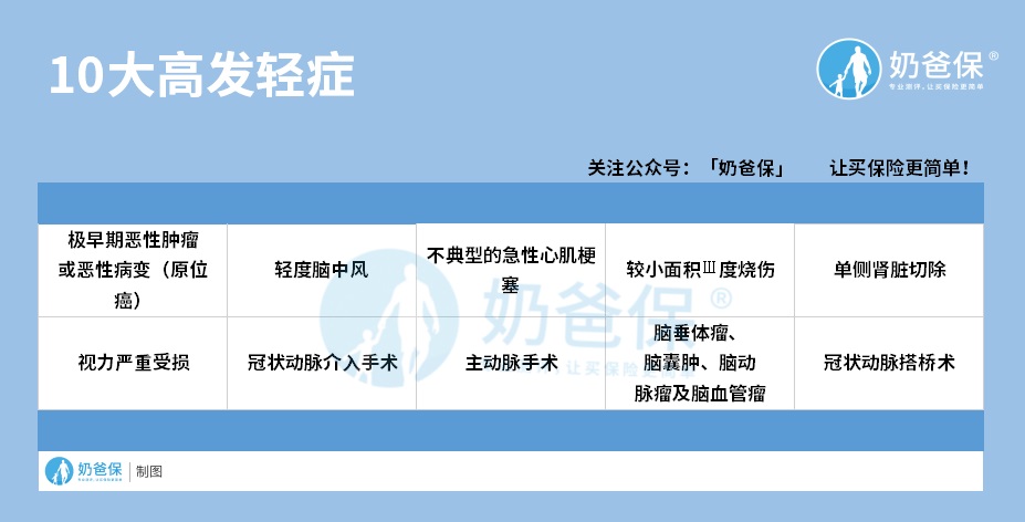 想了解更多重疾险奶爸这里推荐一篇文章《2020重疾险排行榜,哪些单次赔付的重疾险值得买》(3)轻、中症种类