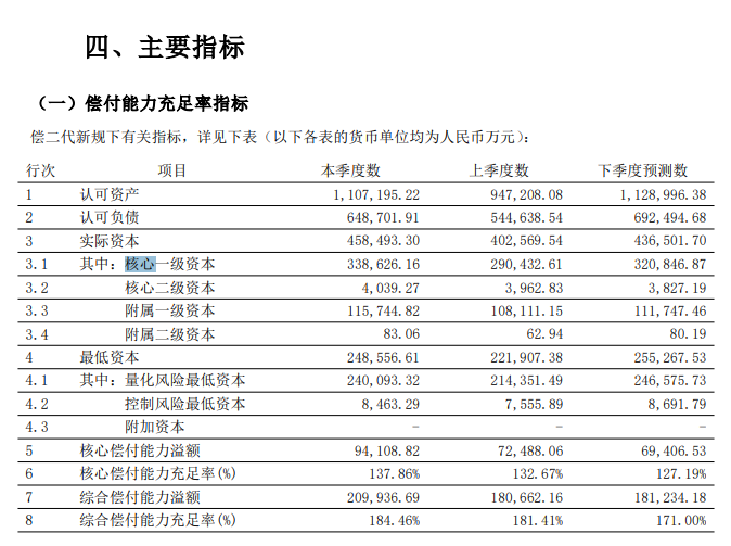 且偿付能力核心指标远超监管红线(核心≥50%、综合≥100%),经营盈利与投资收益表现亮眼。