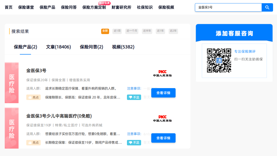在奶爸保官网搜索【金医保3号】即可找到对应的产品。