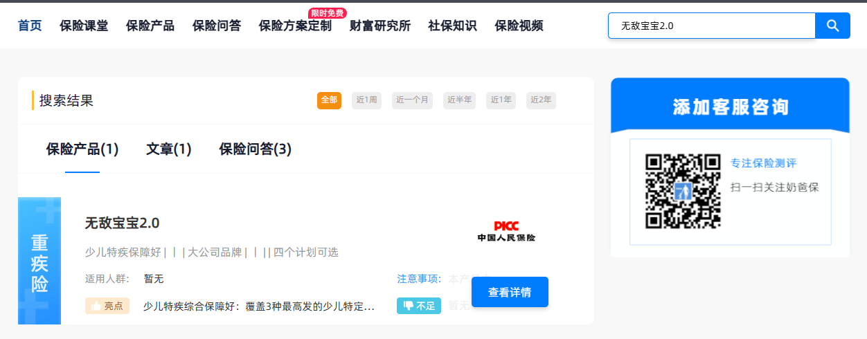 在奶爸保官网搜索【人保无敌宝宝2.0重疾险】即可找到产品投保。