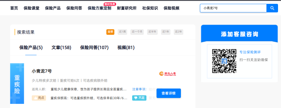 在奶爸保官网搜索【小青龙7号】即可找到对应的产品。