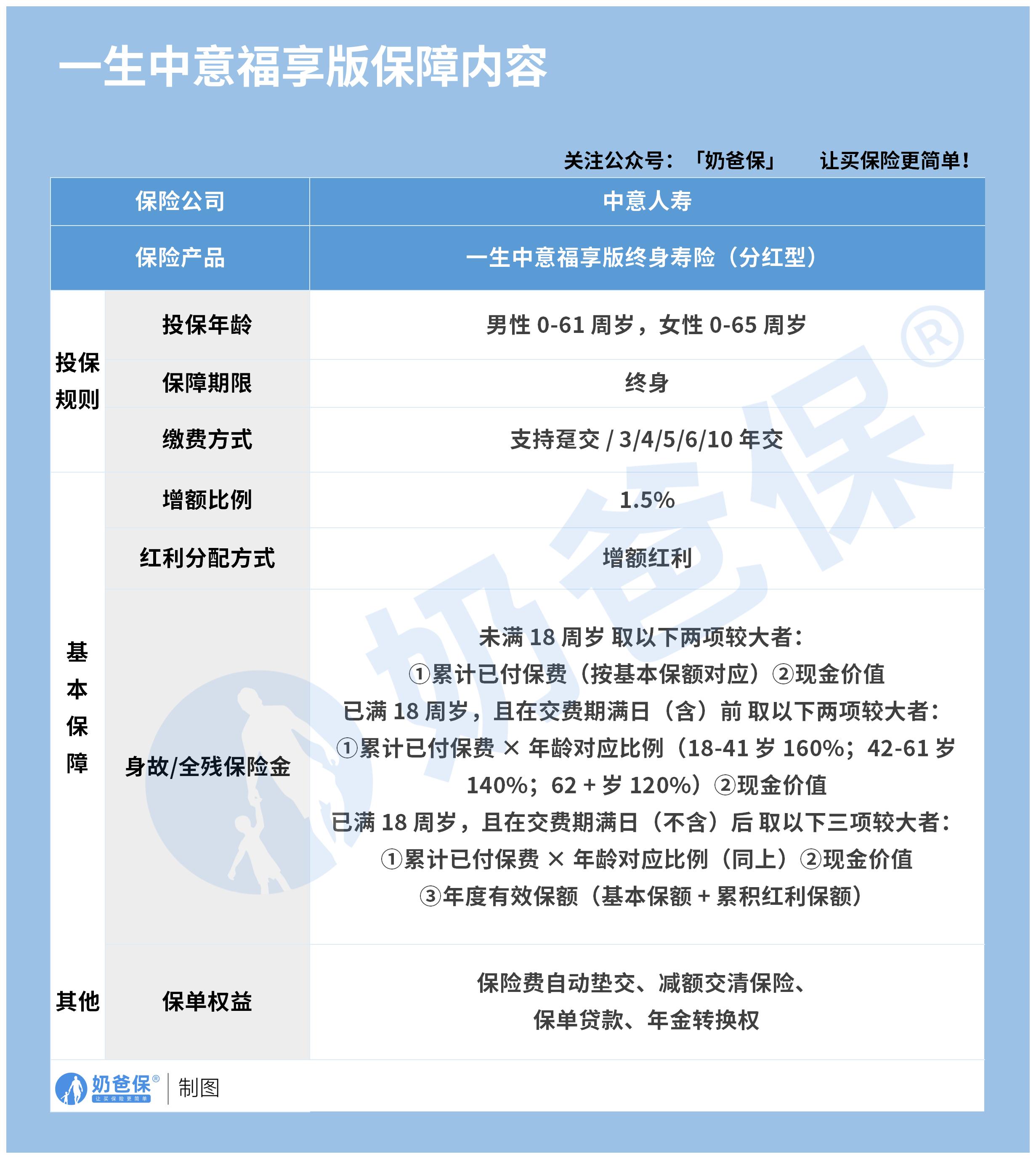 这款产品由中意人寿推出,核心是“保障+分红”双属性,先看关键信息: